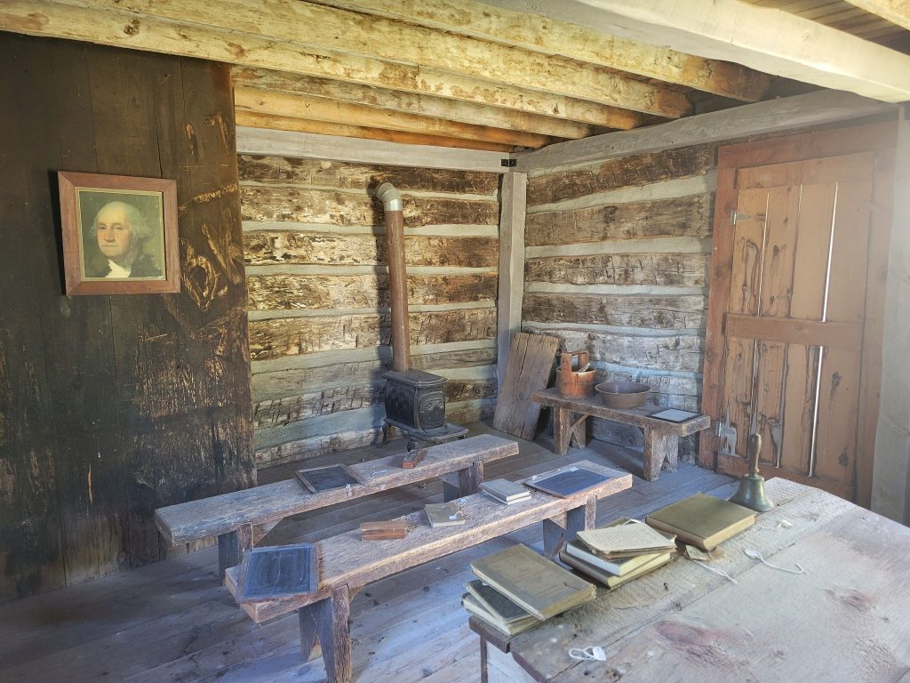 Restoration was again needed 40 years later in 2019. A local stone mason removed old chinking between the logs, scraped wood rot off each individual log, and stabilized the internal structure before re-chinking the logs.